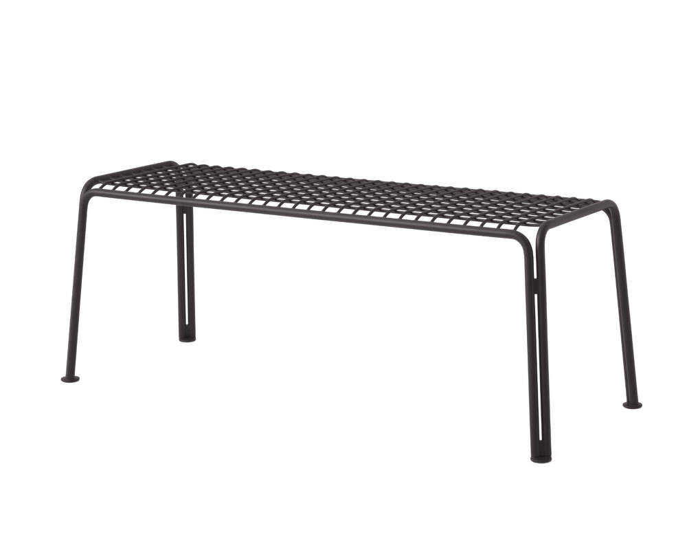 Durable steel Thorvald SC112 outdoor bench from Danish brand &Tradition, designed by Space Copenhagen. Colour: warm black.