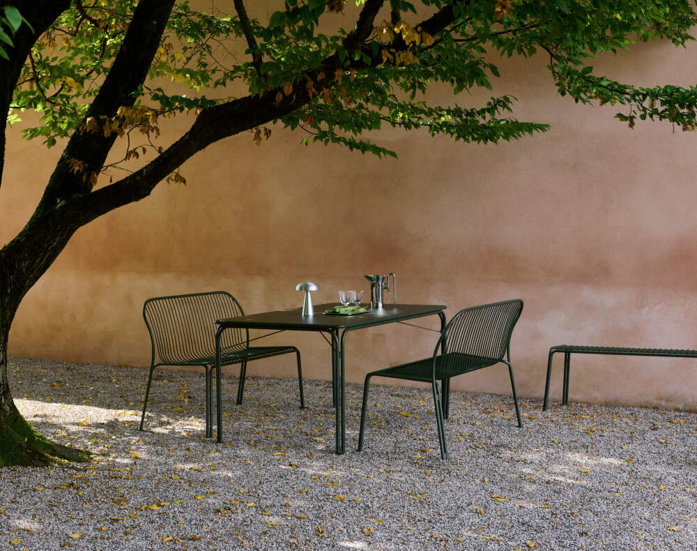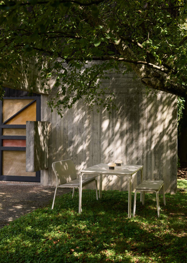 The steel furniture with grid seating feels airy and light and has a soft inviting silhouette that plays with light and shadow. The collection consists of chairs, armchairs, benches and tables in muted, understated colors. Versatility, comfort and stability are the key. Seat pads and cushions are available for extra comfort. Thorvald finds its place in outdoor bistros or cafes as well as on private terraces and gardens.