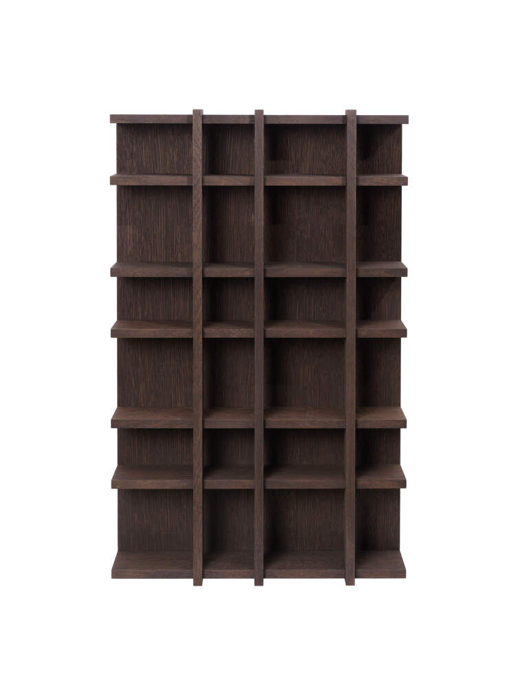Tall Tilem 4x6 wooden shelf from Danish brand Ferm Living. Finish: dark stained oak.