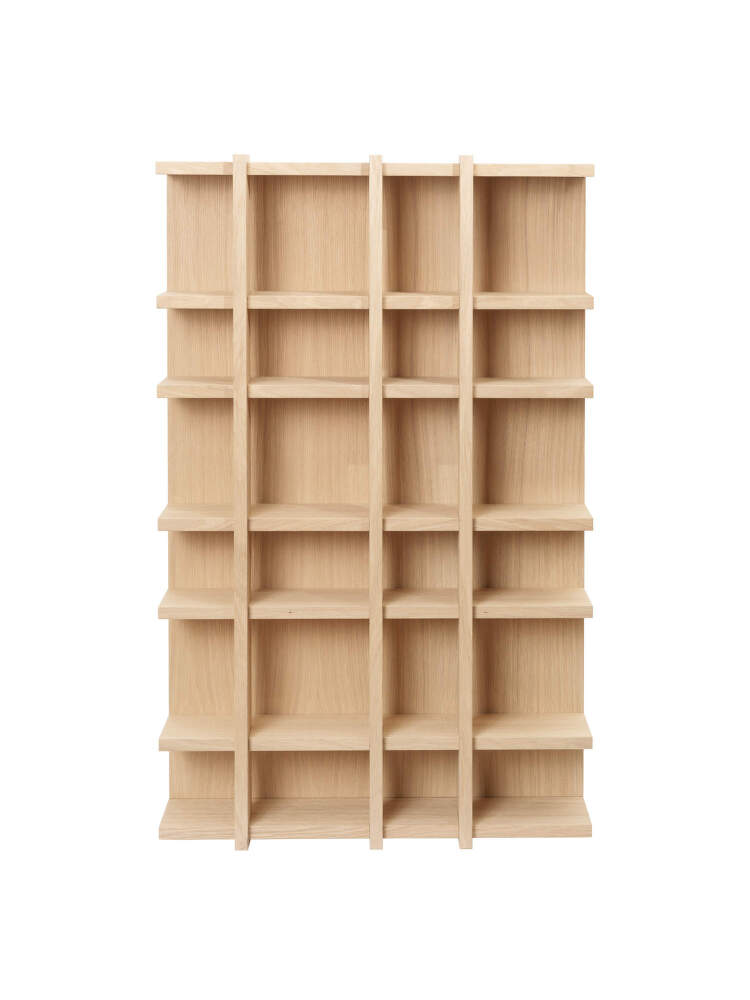 The shelf is made from oak veneer with an MDF core and finished with oil to enhance the natural character of the wood. Its clean design allows it to fit easily into kitchens, dining areas and living spaces.
