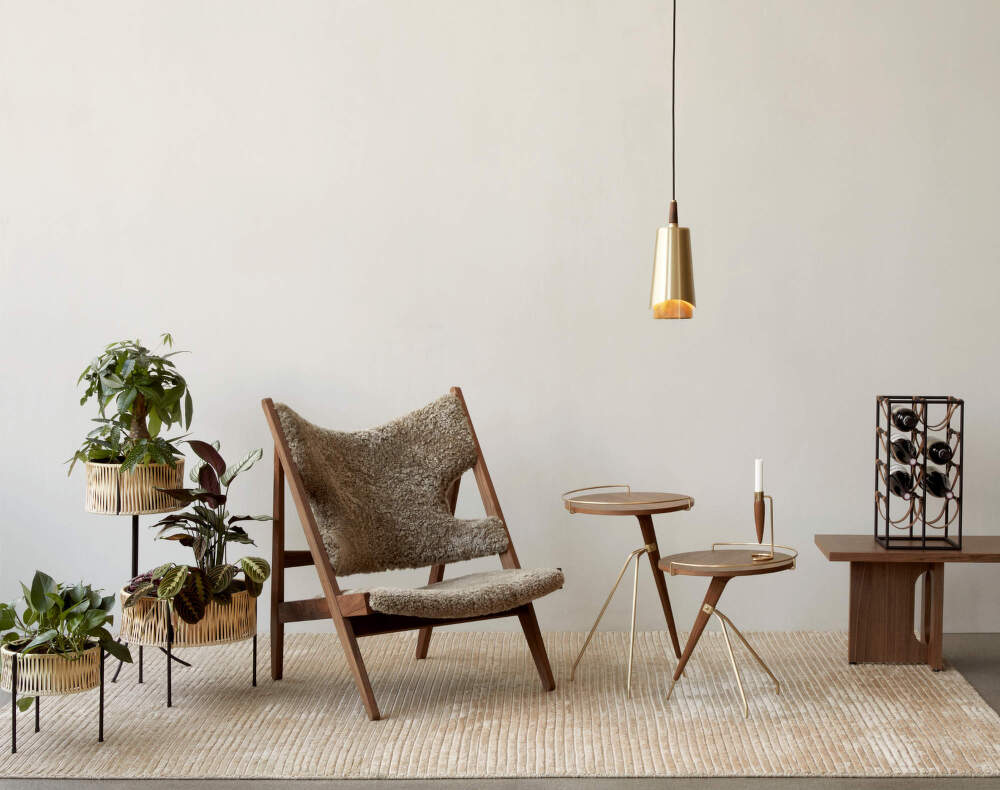 The Umanoff pendant lamp by designer Arthur Umanoff from the 1950s is an example of harmony between contrasting materials and geometric shapes. It combines the warm tone of solid walnut wood with the elegant shine of brass and steel. These elements come together in a clean form that remains timeless even in contemporary interiors.