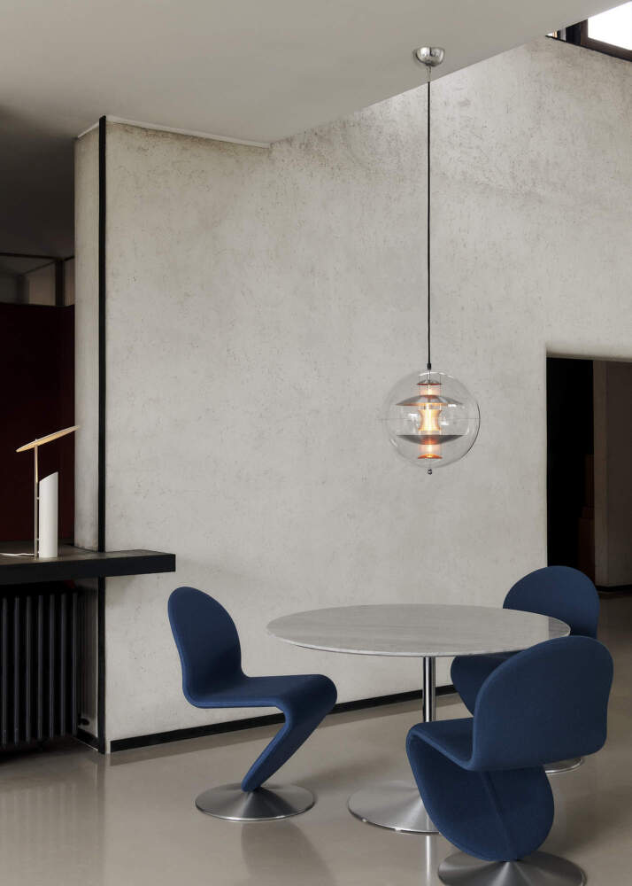 The VP Globe pendant light is one of Verner Panton’s most iconic designs from 1969–1970. The transparent spherical form reflects his fascination with new materials as well as his conviction that the light source should never be directly visible. The result is a luminaire that looks futuristic and at the same time creates exceptionally pleasant ambient light.