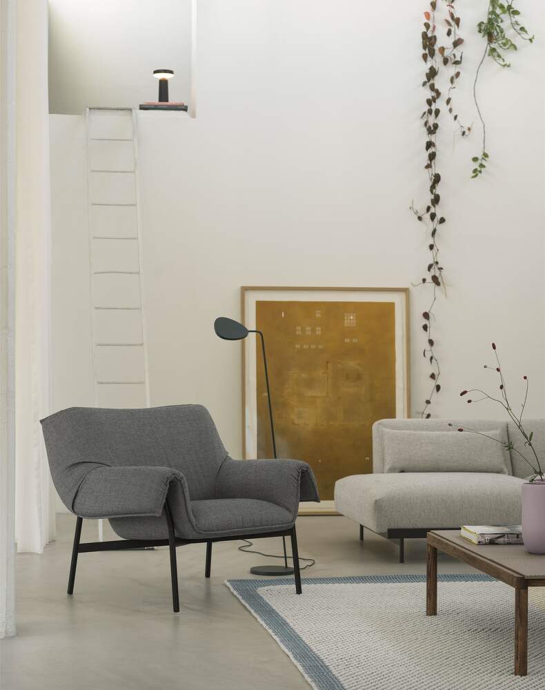 Just like snuggling into a fluffy duvet. That's how you'll feel sitting in the Wrap Lounge Chair by Muuto. Its design reflects the ultimate goal - maximum comfort. In contrast to the voluminous shape is a light steel frame. The draped upholstery is a result of extensive research and development as well as craftsmanship and know-how. The Wrap Lounge Chair is simple, yet refined, combining feeling of lightness with top-notch design and maximum comfort.